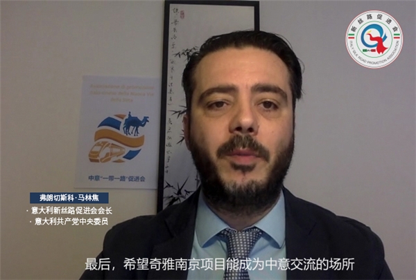 此次发布会上,奇雅商业更是邀请了意大利新丝路促进会会长、意大利共产党中央委员-弗朗切斯科·马林焦通过视频在意大利发来祝贺,贺词视频中说到:“意大利新丝路促进会,如其章程所示,其目的是在意大利推动“一带一路”项目,这是促进各国人民和平与合作的主要工具,它将有助于意大利和中国之间的经济、因此,协会的宗旨是在我们美丽的国家中推广普遍的原则和价值观,以及发展机会。奇雅南京项目作为与意大利新丝路促进会合作的起点,中意合作的载体之一,美食、汽车、家居等相关意大利产业的引进方面做出了承诺,新丝路促进会作为一带一路会员理事会单位,我们则责无旁贷的给予支持。”