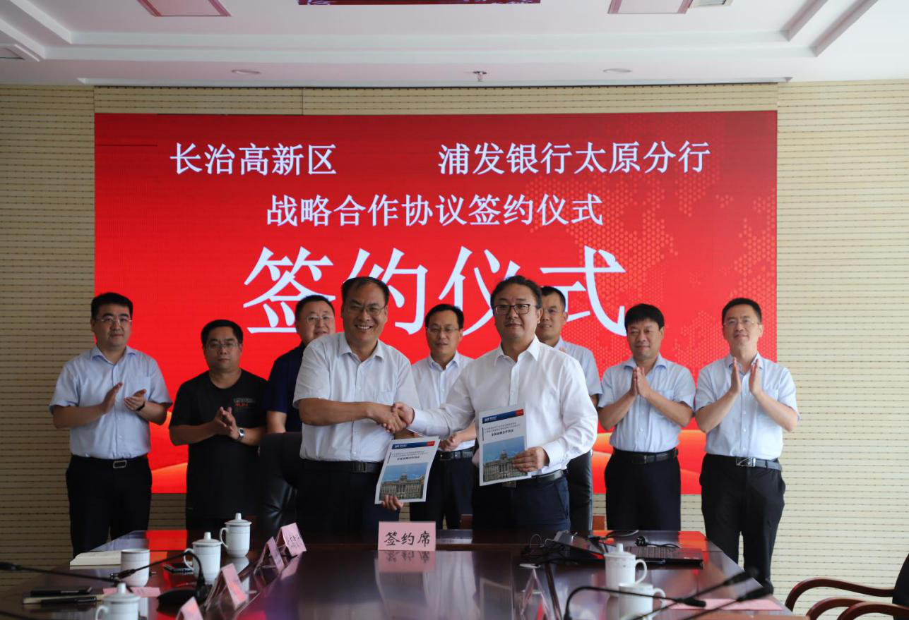 7月23日,浦发银行太原分行与长治高新区管委会签订战略合作协议。双方将就半导体光电产业园和科技工业园智能制造产业园两大项目展开深度合作。长治市政府副市长尚日红,高新区党工委书记、浦发银行太原分行行长白海忠等领导参加签约仪式。