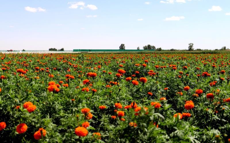 去年以来,建新村结合“三变”改革,成立建新农业专业合作社,试点种植万寿菊100亩,亩均纯收入达3000元。今年,建新村进一步优化产业结构,拓宽农民增收渠道,按照“支部+合作社+基地+农户”运作模式,流转土地200亩,将花卉基地面积扩大至300亩。同时,与合作公司签订收购协议,明确提出万寿菊收购单价1.2元/公斤,确保万寿菊种得好,卖得俏。