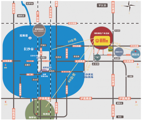 浏阳国际家具城总面积为20万平米,其中一期浏阳国际家具城15万平米家具市场已于2016年1月1日正式开业,已稳定运营5年时间,业务覆盖浏阳各个乡镇及长株潭经济圈,向东辐射至上栗、铜鼓、万载、萍乡;向南辐射至醴陵、攸县、衡阳;向西辐射至娄底、邵阳;向北辐射至湘阴、平江、汨罗、益阳、常德、岳阳