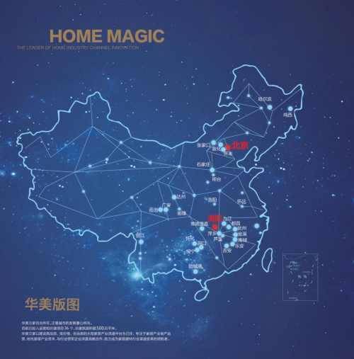 华美立家由中国家居建材流通领域的领军人物贾锋发起,联合多家产业资本共同组建而成。以建立家居建材产业平台为己任,致力成为中国家居建材商贸中心领域的专业开发运营商,及家居建材行业渠道变革的领航者。目前已投入运营和在建项目37个,分布在河北、黑龙江、江西、四川、广西、湖南、辽宁、云南、安徽、山东在内的10个省34个城市,总建筑面积逾500万平米,年销售额300亿元。