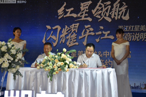 签署完战略协议后,众多商家代表也上台签署了意向入驻协议,他们坚信凭借红星品牌顶级的硬件、丰富的业态、品牌集群、高品位理念,以及天岳新区得天独厚的地理优势,将会变革平江商业经营管理模式