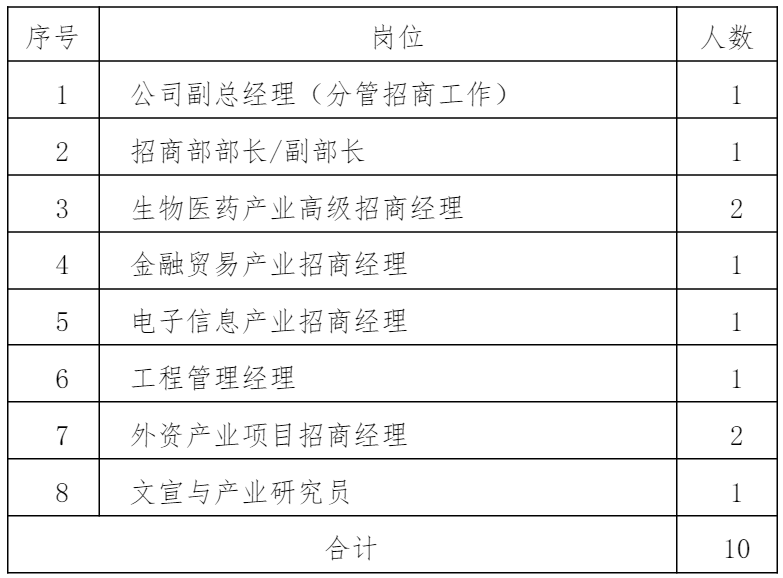 海口国家高新区国际投资咨询有限公司(筹备)招聘岗位共10人如下表:
