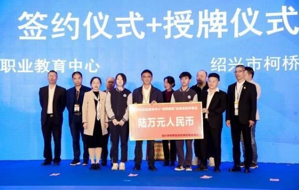 作为本次论坛的重头戏,现场还举行了助学仪式,纺织绣花商会在绍兴市柯桥区职业教育中心设立“锦绣前程”创意学生奖助金项目,双方代表签署助学捐赠协议,捐助6万元,帮助并鼓励优秀学生和困难学生更好、更有条件地完成学业。校长钟健康现场代表学校,授予商会“爱心助学、领军行业”资助荣誉牌匾,支持绍兴柯桥纺织绣花行业创新人才的培育计划。