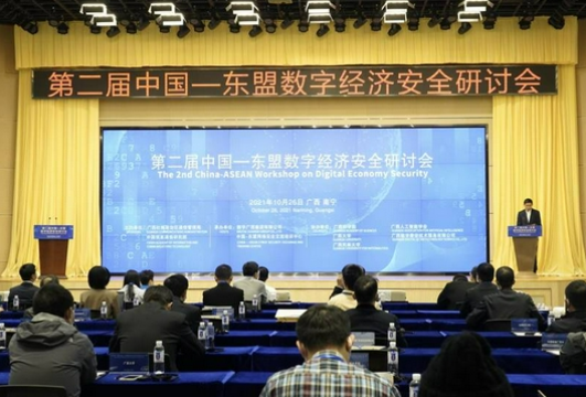 2021年10月26日,由广西壮族自治区通信管理局和中国信息通信研究院联合主办、数字广西集团和中国-东盟网络安全交流培训中心联合承办的“第二届中国-东盟数字经济安全研讨会”在广西南宁召开。工业和信息化部国际合作司副司长庾志成以视频方式在开幕式上致辞,广西壮族自治区通信管理局副局长谭国栋现场参加开幕式并致辞,泰王国驻南宁总领事馆总领事彬嘉玛·塔维她雅浓女士现场参加开幕式。