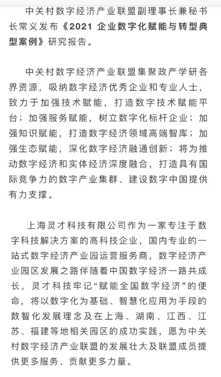 9月5日,由北京市国资委、清华大学、中关村数字经济产业联盟联合主办的以“构建数字生态共同体 赋能国企高质量发展”为主题的“2021数字经济产业大会暨北京国企数字化转型研讨会”在北京北苑大酒店隆重召开。上海灵才科技有限公司作为中关村数字经济产业联盟理事单位参加了本次大会。