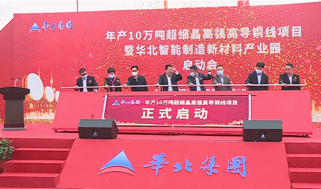 28日上午,华北集团年产10万吨超细晶高强高导铜线项目以及智能制造新材料产业园项目启动会在潘庄工业区华北智能制造新材料产业园内举行。区委常委、副区长惠冰出席启动仪式并讲话。