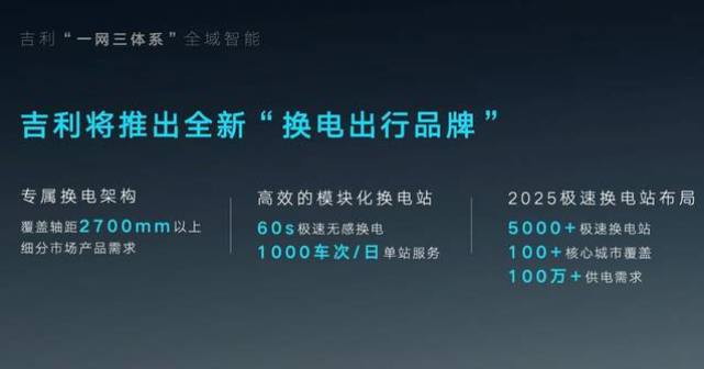 同时,吉利在“换电架构、换电站、换电车辆”领域已经拥有上千项技术专利,并参与了国家换电标准的制定。基于专属换电架构,吉利还将推出全新“换电出行品牌”。到2025年,实现100个核心城市布局5000座极速换电站,满足100万辆车的换电需求。