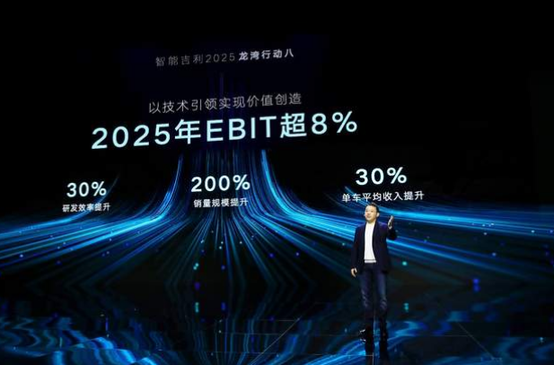 龙湾行动八:以技术引领实现价值创造,2025年实现EBIT达8%以上。吉利将通过“全面架构造车”提升规模效应,降低车型研发及供应链成本,研发效率提升30%,同时实现全链路数字化智能制造、全球技术输出,最大化地降本增效。到2025年,吉利将实现销量规模提升2倍,市场占有率中国品牌第1,实现单车平均收入提升30%。