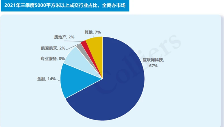 一方面,数字经济时代互联网企业发展势头迅猛,中小科创企业层出不穷,为写字楼产业园需求增长奠定了产业和企业基础。高力国际报告显示,三季度北京写字楼市场需求持续复苏,单季度净吸纳量达21.5万平方米,其中5000平以上的大面积成交仍以互联网科技类企业为主,占比高达65%。