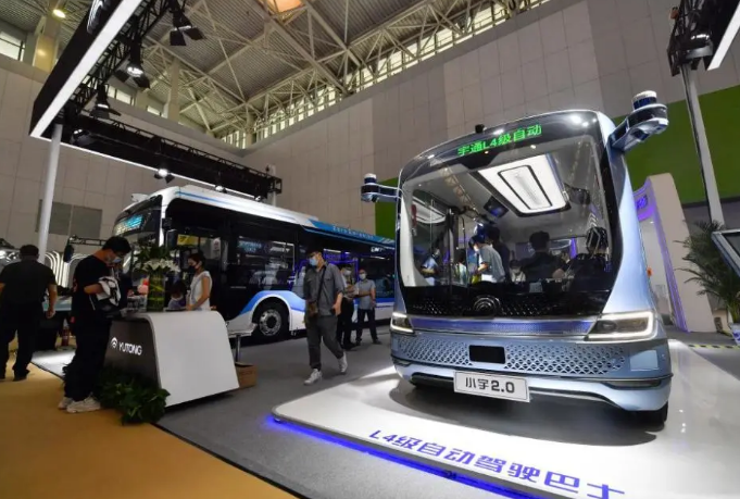 这是在天津梅江会展中心拍摄的L4级自动驾驶巴士(5月20日摄)。新华社记者孙凡越 摄