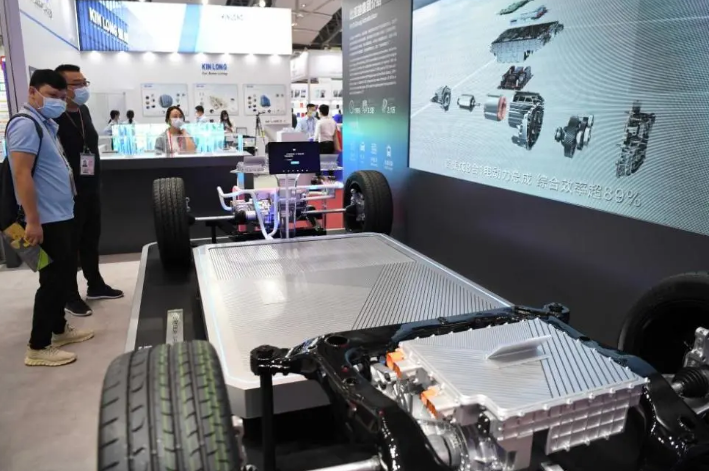 第130届广交会上拍摄的比亚迪的刀片电池展台(10月15日摄)