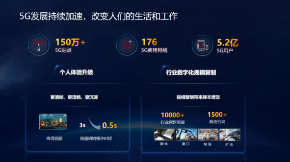 在快速规模商用的过程中,5G正在改变人们的生活和工作。比如,消费者观看一部1GB的高清影片,初始缓冲时延从过去的3秒降低到0.5秒,真正实现了观影无卡顿体验。“相信随着5G的进一步发展,个人体验将逐步走向高清沉浸化时代。”梁华充满信心地讲道。