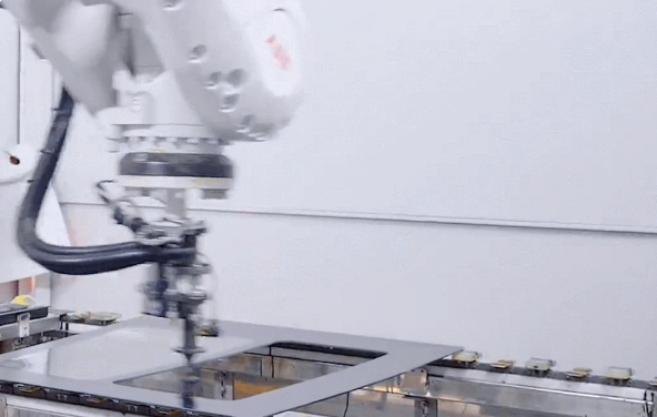 △机器正在进行底涂和涂胶工作。