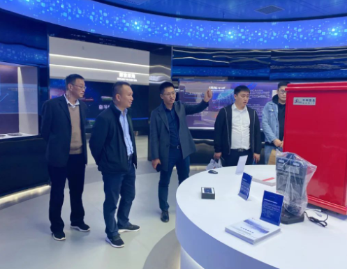 在金主任的讲解下,庆元县科学技术局局长陈肖波一行参观了大数据挖掘分析、嵌入式操作系统、互联网智能信息等业务系统和产品的现场演示,详细了解了相关业务的技术、产品开发进展及市场开拓等情况。