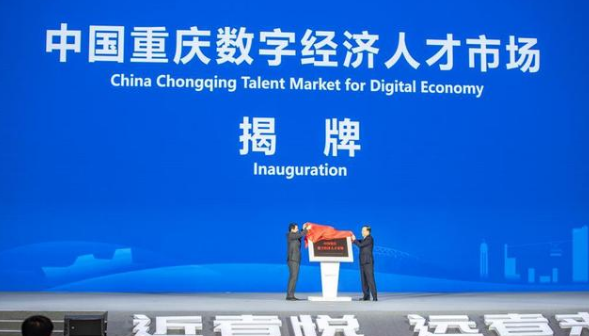11月20日,嘉宾为中国重庆数字经济人才市场揭牌。