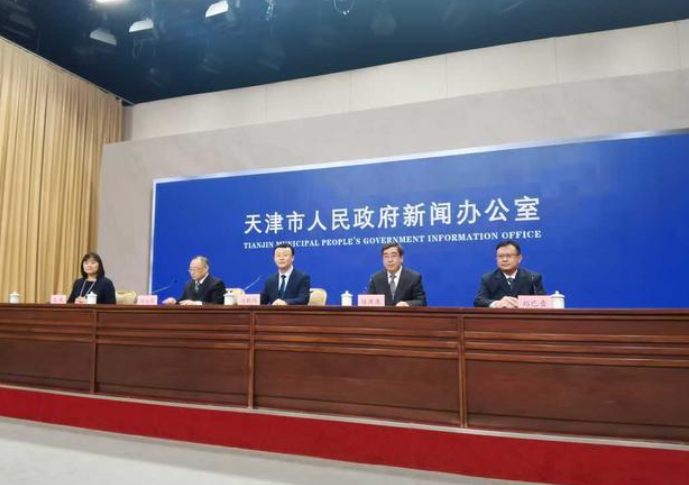图为天津市政府新闻办召开新闻发布会现场。