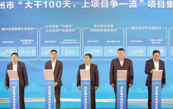 11月26日上午,青岛胶州市举行“大干100天,上项目争一流”项目集中签约仪式。此次集中签约共有29个项目,投资总额约605.5亿元。其中,胶州市人民政府与青岛海尔空调电子有限公司签订战略合作,海尔胶州空调智能制造基地项目正式落地胶州。