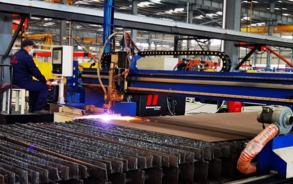 贵州盘誉泰合机械有限公司生产车间里,工人正在操作等离子切割机。