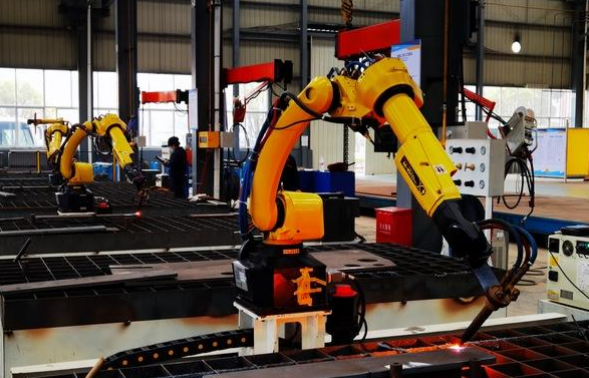 贵州盘誉泰合机械有限公司由贵州誉创机械有限公司与山东能源重装集团旗下金元物资供销有限公司联合组建,是专业从事煤矿设备研发、生产的大型装备制造企业。记者看到,该公司生产车间除智能焊接机器人外,还有4台机器人倒角机和2台等离子切割机,以上设备均需输入编程,即可自动生产。