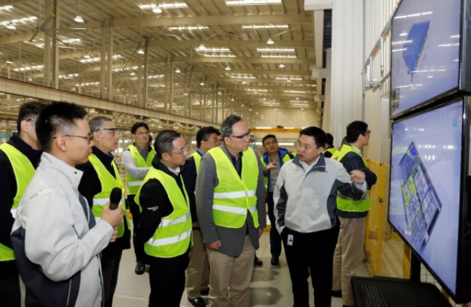 比如,此次会议召开的地点,恺博座椅机械部件常熟工厂便是其中之一。这间面积达9万平方米、层高超过20米的厂房中集成了智能化、可视化的成品立库,数据实时监控的电泳生产线,运用了数字孪生技术的高效率冲压产线,利用AI技术取代人工听音技术的声音振动测试V-test……随着一块块屏幕上不断滚动显示着各种数据,生产计划、生产进度、设备情况、产品质量、生产能耗等一目了然。