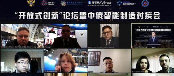 中新网哈尔滨12月6日电 (刘玉超 记者 姜辉)6日,“开放式创新”论坛暨中俄智能制造对接会在中国哈尔滨市、深圳市、镇江市和俄罗斯莫斯科市四地以视频连线方式举行。会议由俄罗斯联邦科学与高等教育部、俄罗斯仪器制造和信息通讯国际联盟主办,哈尔滨市科学技术局、镇江市科学技术协会、深圳证券信息有限公司联合主办,来自俄罗斯10余个地区的重点大学、科研院所、科研和教育中心以及中小型科创企业等30余家单位参会。