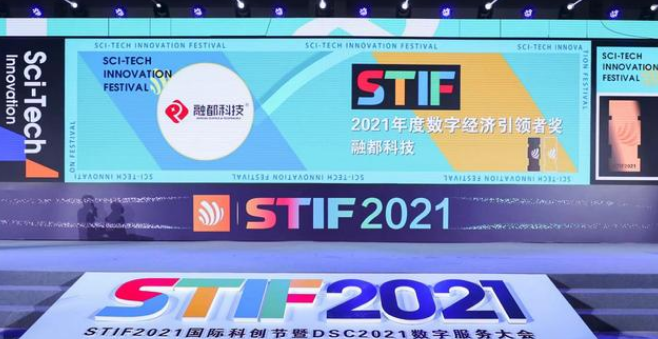 融都科技受邀参会,同时经组委会提名推荐、评委会审议,凭借前沿的技术、优秀的数字经济场景解决方案能力、良好的社会评价及企业影响力,获评“2021年度数字经济引领者奖”,董事长冯科获评“2021年度数字化推动力人物”。