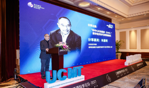 接着,经济学家、横琴数链数字金融研究院学术与技术委员会主席朱嘉明(下图)以《非中心化自组织(DAO):数字经济时代的管理模式》为题,发表了演讲。众所周知,随着DeFi、NFT的火爆,基于区块链的去中心化自组织(DAO)也越来越成为人们关注的焦点。DAO实际是英文Decentralized Autonomous Organization的缩写,是基于区块链核心理念衍生出来的一种组织形态,其本质是区块链技术应用的一种形式,同时也被称作是人类“协作史”上的一次革命性进化。