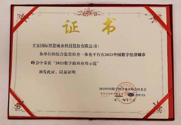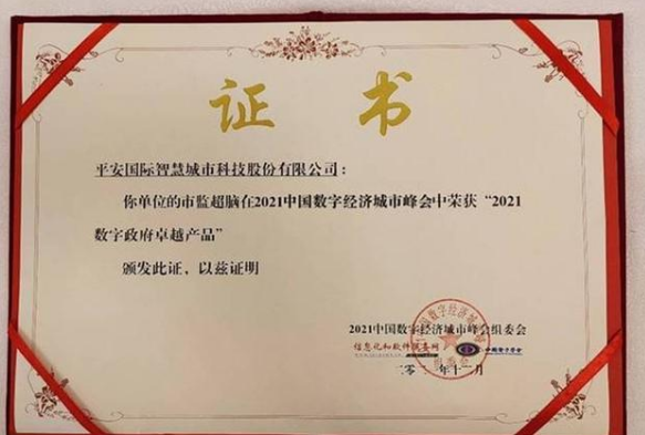 近日,主题为“新经济·新城市·新政务”的2021中国数字经济城市峰会在北京隆重召开。本次大会聚焦智慧城市与数字政府建设,在行业具有影响力。会上公布了“2021十大‘数字政府’样板工程”、“2021十大‘数字大脑’优秀产品”等奖项获奖信息,平安智慧城市政企超脑·监管超脑的5款产品获得了大会的认可,荣获5项数字城市/数字政府大奖。
