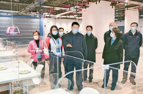 2022年1月4日,中共中央总书记、国家主席、中央军委主席习近平在北京考察2022年冬奥会、冬残奥会筹办备赛工作。这是4日上午,习近平在北京冬奥会、冬残奥会主媒体中心智慧餐厅,察看智能餐饮设备运行情况。 新华社记者 谢环驰/摄
