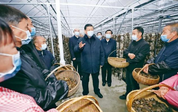 2020年4月20日至23日,中共中央总书记、国家主席、中央军委主席习近平在陕西考察。这是4月20日,习近平在商洛市柞水县小岭镇金米村智能联栋木耳大棚,同村民亲切交流。