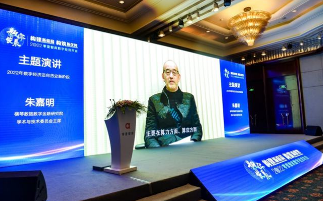 横琴数链数字金融研究院学术与技术委员会主席朱嘉明发表了《2022年数字经济迈向历史新阶段》的主题演讲。他指出,2022年数字经济在十个方面都会有非常重要的突破和表现。