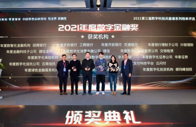 在2021年度数字金融奖和数字化专项奖中,招商银行、工商银行、兴银理财、建信金科、交银租赁、中国平安、华泰证券、博时基金、云闪付、兴业银行、启明创投等16家机构,因过去一年里在数字金融细分领域的领军表现,分别获得“2021年度数字金融奖”。
